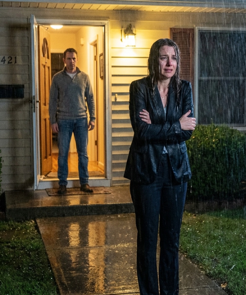But the woman under the flickering porch light looked nothing like the legend. Her designer coat was heavy with rain. Her hands trembled. Power had drained from her posture, leaving behind someone painfully human.