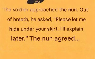 The tired soldier, out of breath, approached the kind nun. “Please,” he replied, “may I hide under your skirt? I’ll…