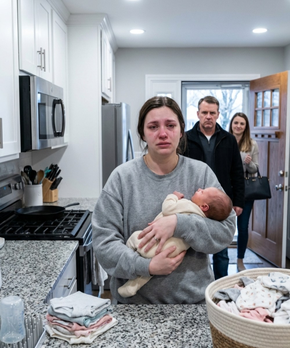 That afternoon I stood in the kitchen with Leo draped over my left shoulder, his breath warm against my collarbone. With my free hand, I folded impossibly small onesies at the table. The house smelled like detergent and sour milk—a scent that clung to everything, even hope.