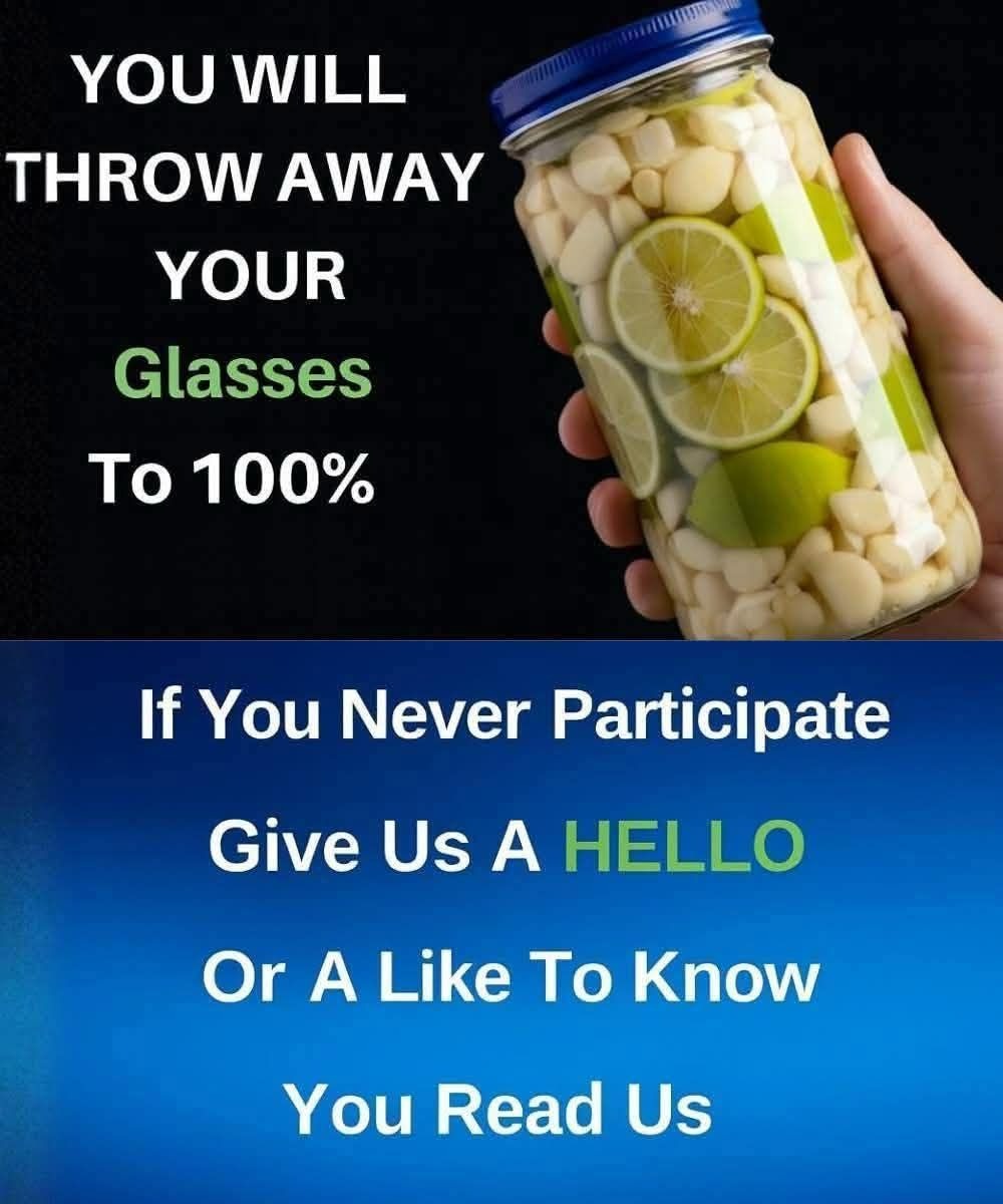 In this article, you’ll learn how to prepare home remedies for vision, their proven benefits, the nutritional properties of their ingredients, and the necessary precautions before consuming them.Main Recipe: Garlic and Lemon Infusion for VisionIngredients:2 medium-sized limes.5 to 6 fresh garlic cloves.1 glass of warm water (250 ml).1 teaspoon of honey (optional).Preparation:Peel the garlic cloves and cut them in half to better release their properties.Wash the lemons well and cut them into thin slices (with the peel).Place the ingredients in a clean glass jar.Add warm water to