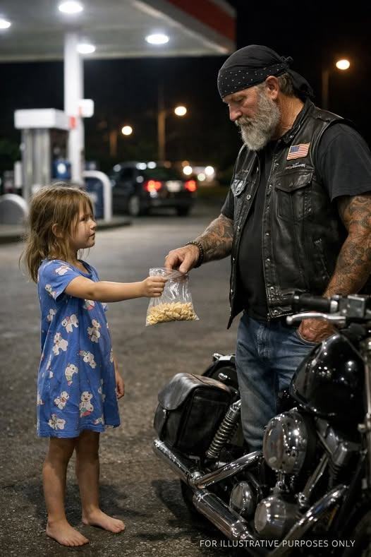 Midnight at a 24-hour gas station is usually nothing but harsh lights, stale coffee, and people trying not to make eye contact. I’d just finished a 400-mile ride and stopped to fuel up my motorcycle before the last stretch home. My body was wrecked, my knee was barking like it always does, and all I wanted was to get back, shower, and sleep.