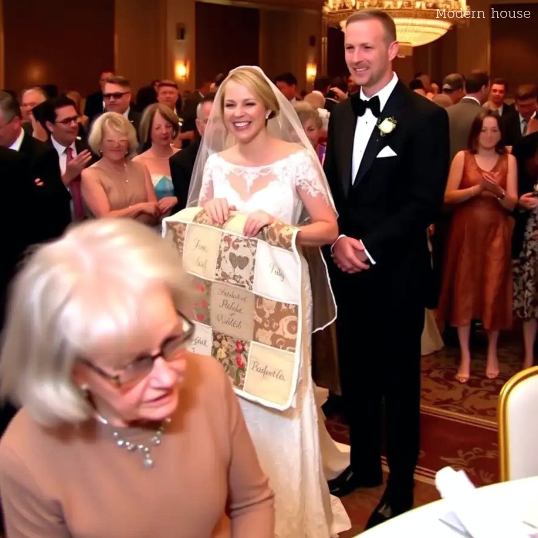 When I handed my grandson and his bride a handmade gift at their lavish wedding, she held it up and laughed in front of 400 guests. I turned to leave in humiliation, but then someone grabbed my hand so hard I gasped. What happened next shook everyone.