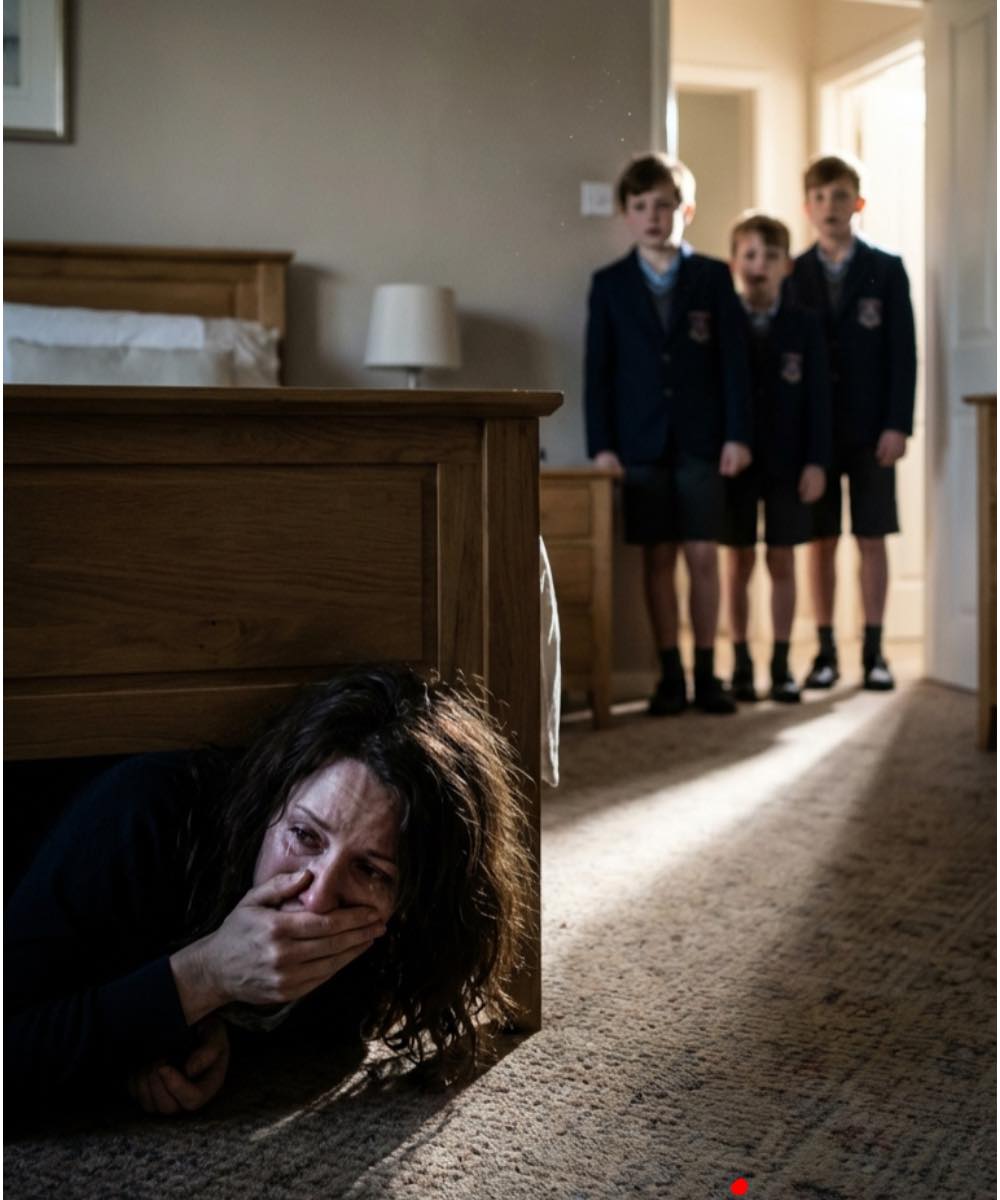 I stayed under the bed, barely breathing, as footsteps moved down the hall. Children’s voices: three, maybe four. My heart pounded against the carpet.