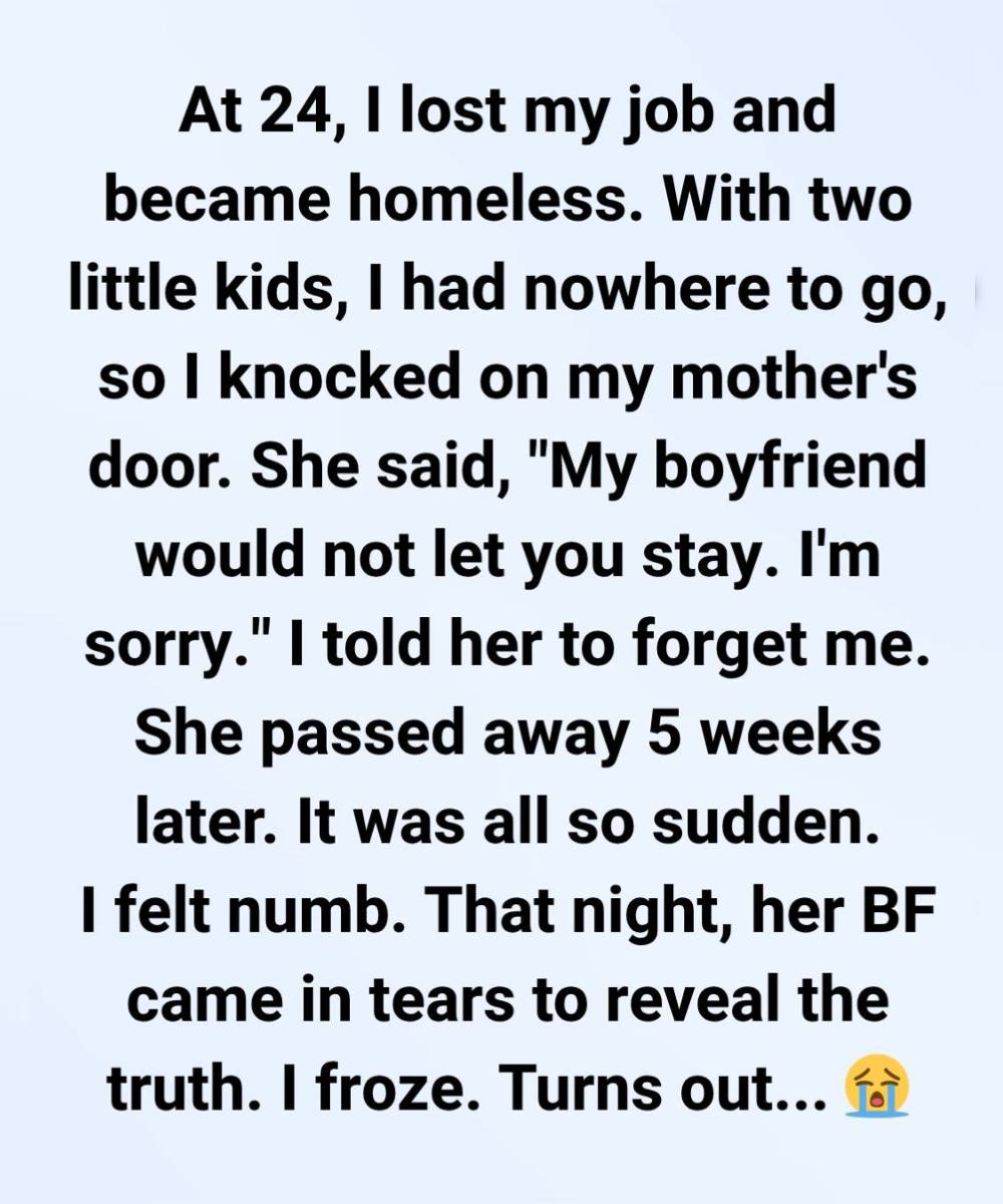 When she opened the door, she looked smaller than I remembered — thinner, her shoulders slightly hunched, her eyes tired but still soft in that familiar way that once made everything feel fixable.